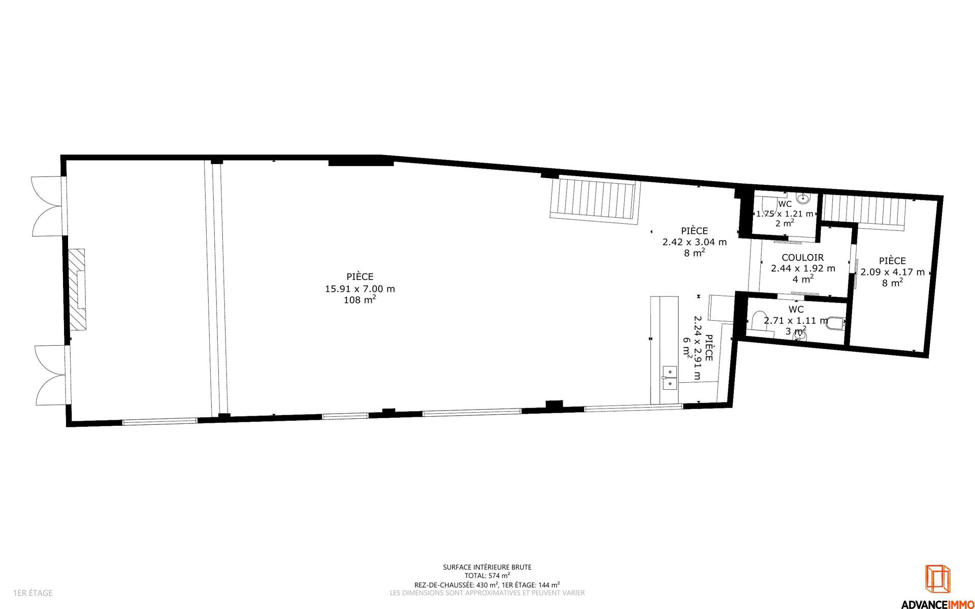 📐 Surface totale : 574 m² bruts